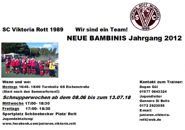Für unsere neue Bambini-Mannschaft, die von Dogan Gül trainiert wird, suchen wir noch Kinder des Jahrgangs 2012. Herzliche Einladung zu den Schnupperwochen im Juni und Juli!