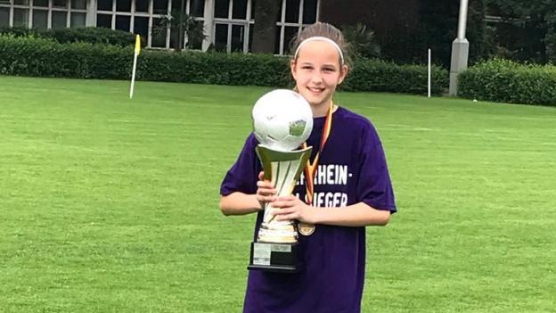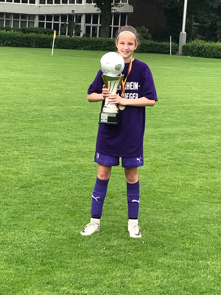 Phoebe Engelmann, Kapitän unserer D1-Jugend, ist nicht nur eine Rotter Teufelskickerin, sondern läuft zudem noch im Rahmen ihres Zweitspielrechts für die U13 des Frauen-Bundesligisten SGS Essen auf. Heute konnte sie zusammen mit ihrer Mannschaft nach einem 3:0-Sieg über den 1. FC Mönchengladbach den Niederrheinpokal gewinnen. Wir gratulieren ganz herzlich und sind sehr stolz auf dich, Phoebe!