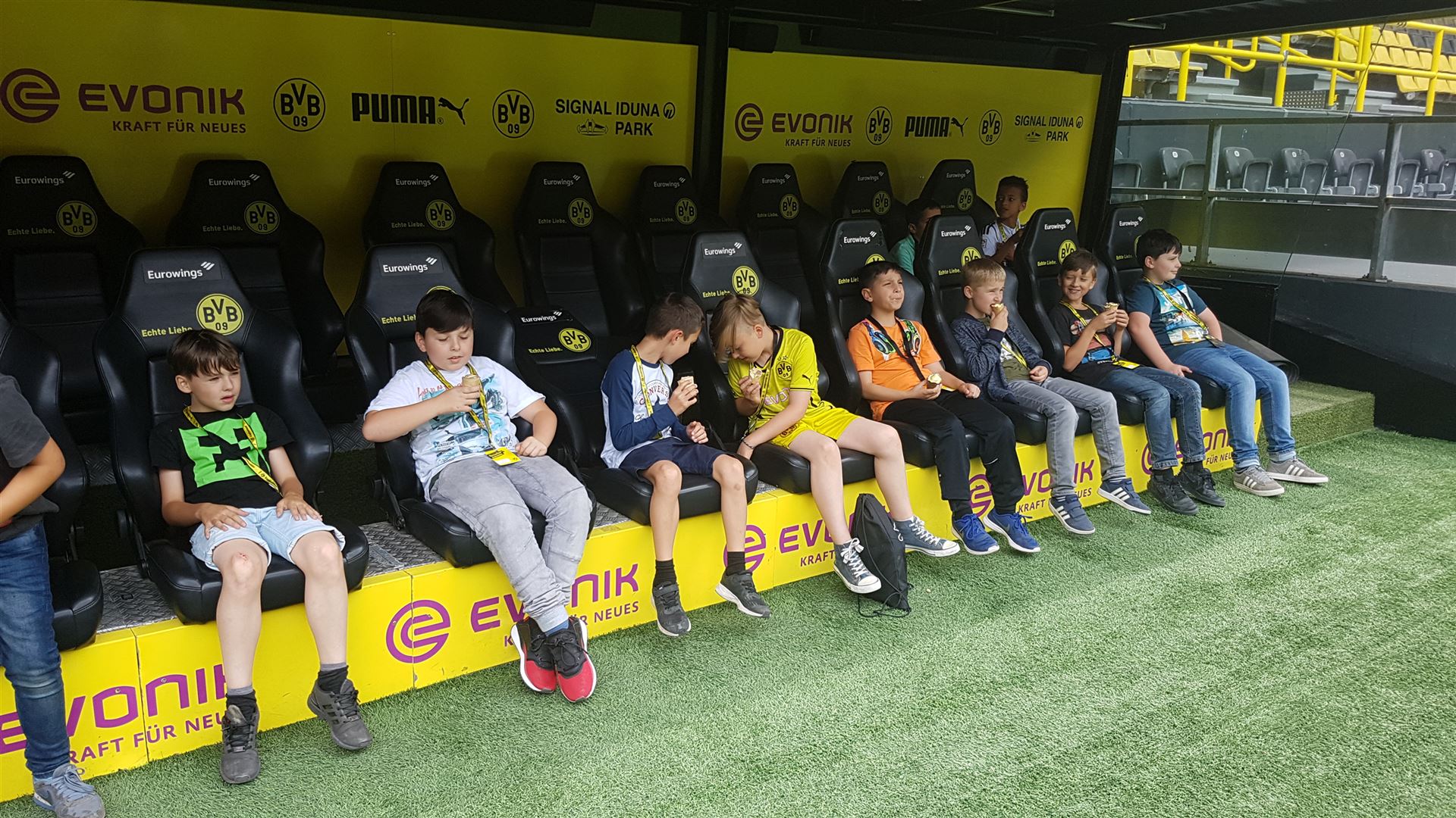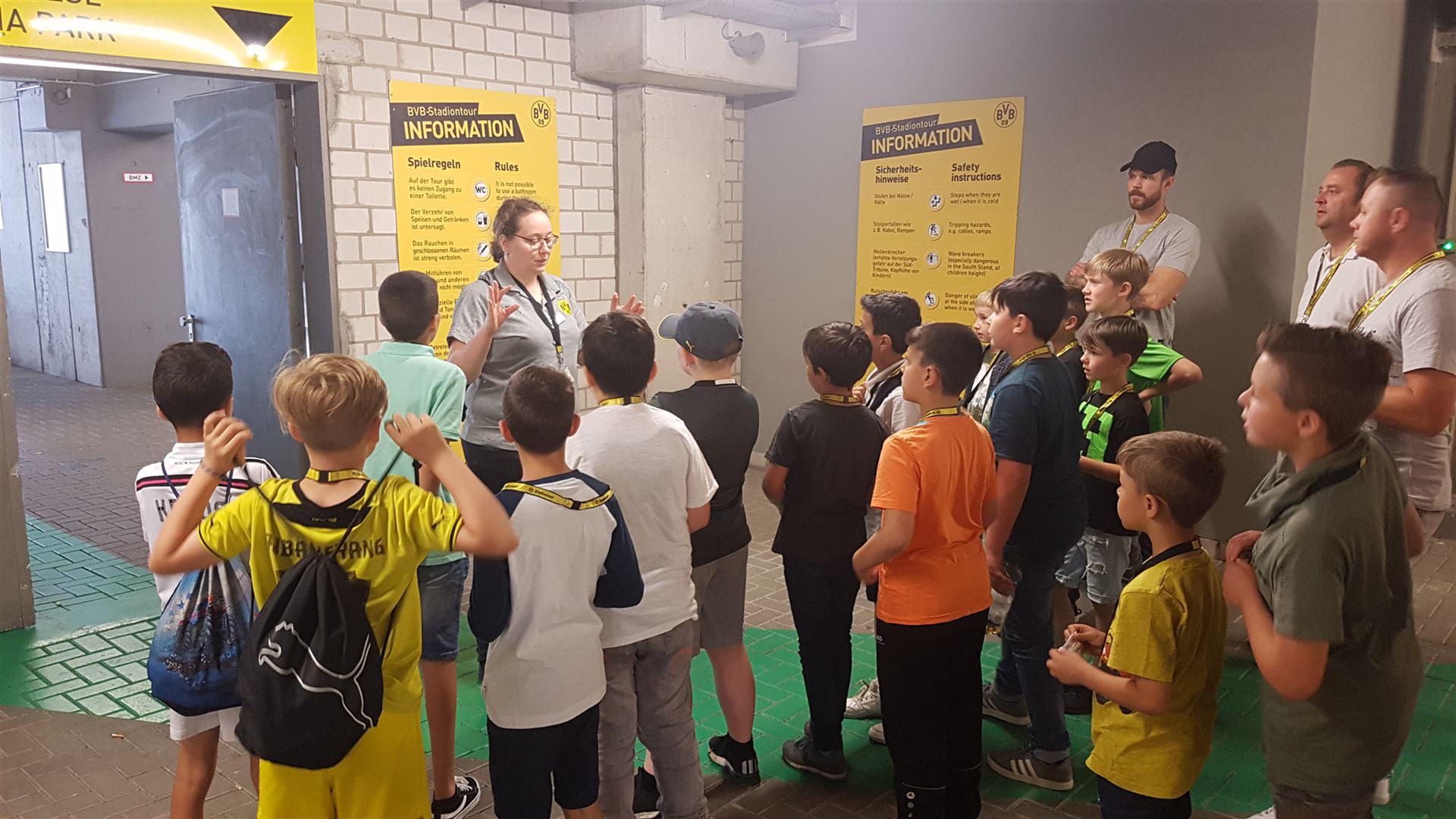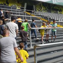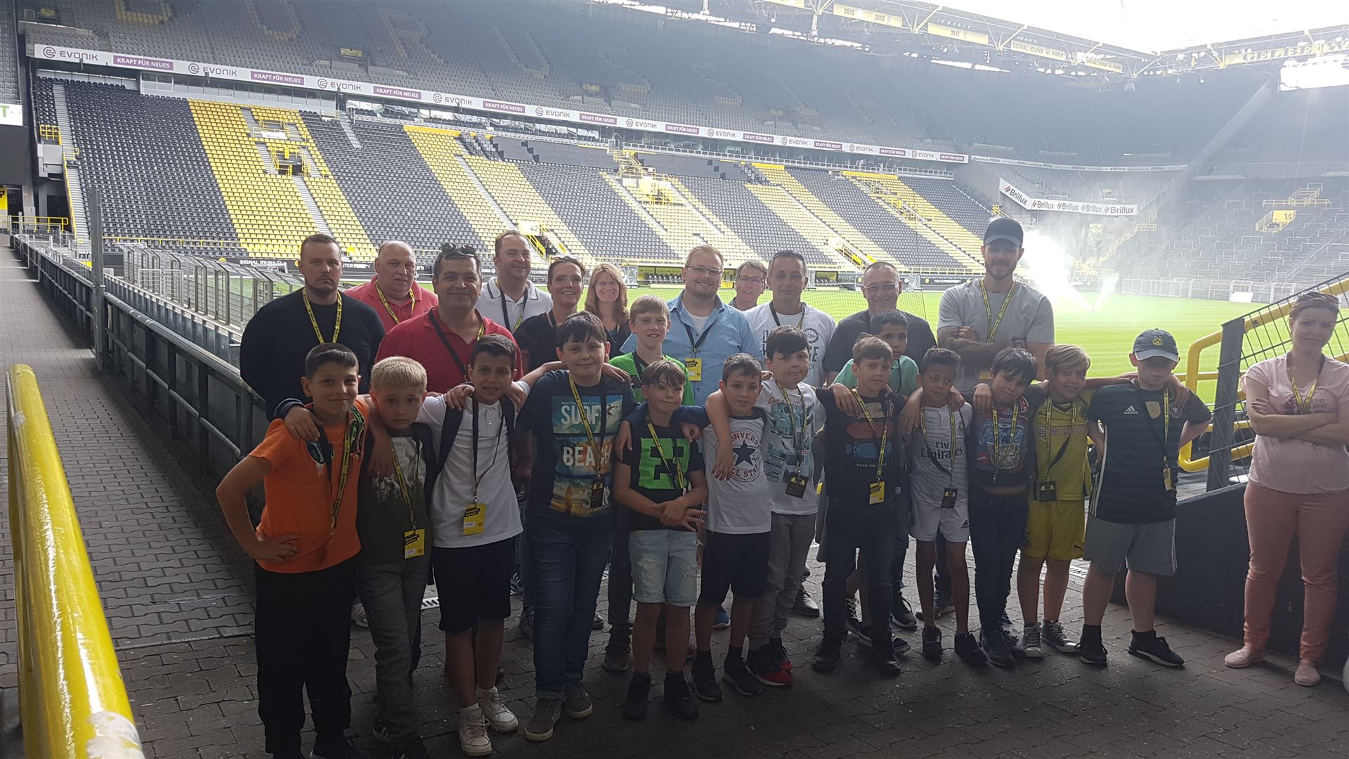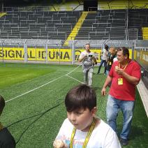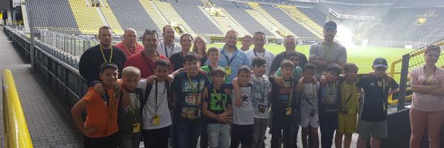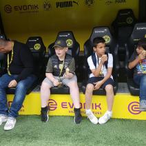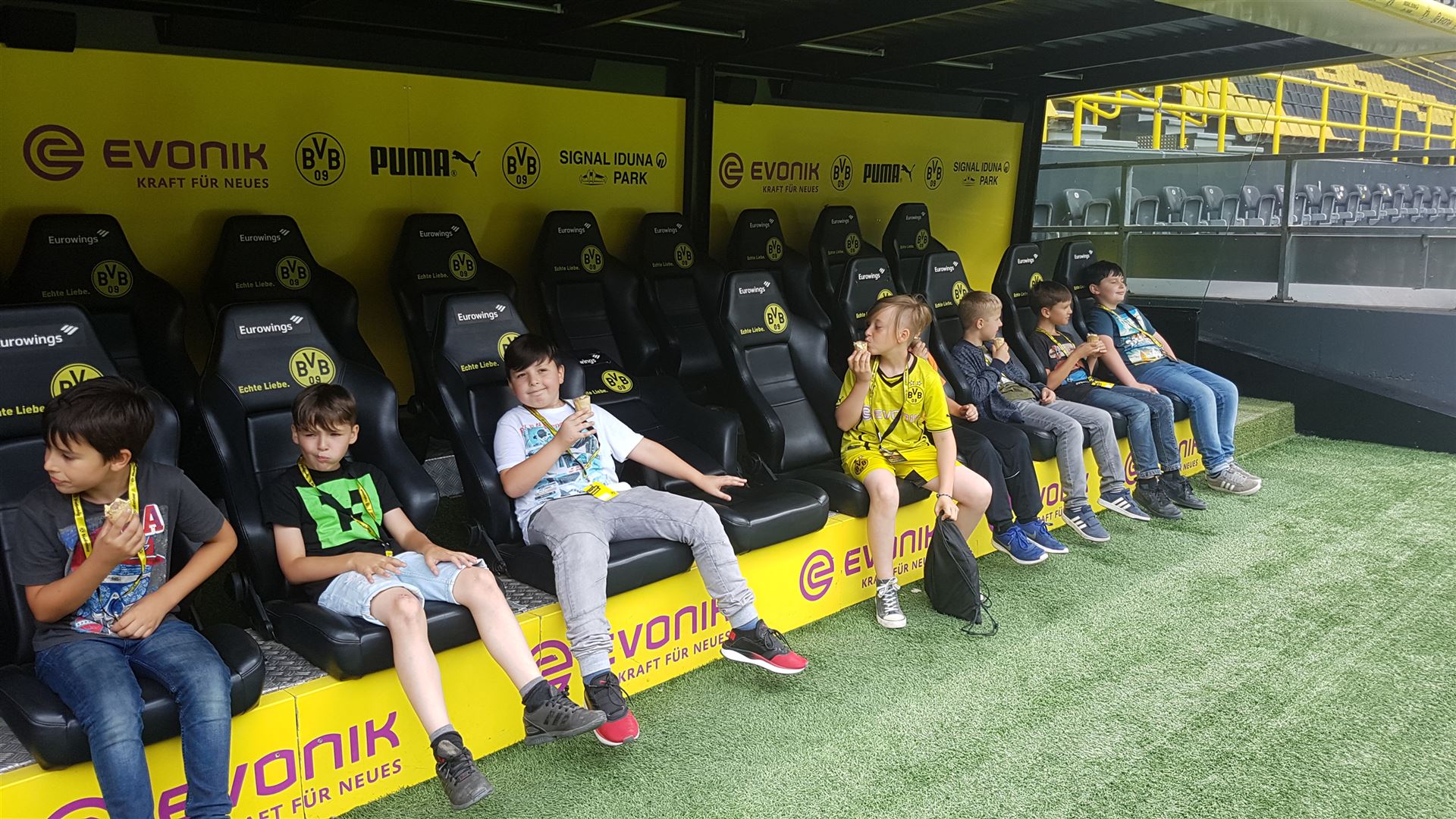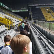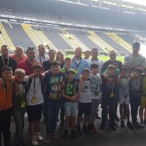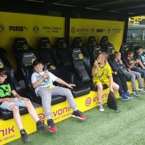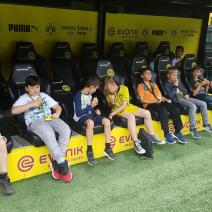 Nach einem harten Jahr, in dem es viele Niederlagen einzustecken gab, hatte sich der Trainer unserer #Teufelskicker aus der E2 eine besondere Aktion für den Saisonabschluss ausgedacht: Am Samstag war es endlich soweit und die Rotter machten sich auf den Weg nach Dortmund zum Signal Iduna Park. Dort führte uns Stadionguide Sarah durch das Stadion, hatte viele spannende und lustige BVB-Anekdoten zu erzählen und zeigte uns den Platz von Gonzalo Castro und Marco Reus in der Umkleidekabine. Auf dem Weg durch den Spielertunnel in Richtung des "heiligen" Rasens konnten unsere Teufelskicker dann mit Musikuntermalung einmal wie die Profis ins Stadion einlaufen und auf der Auswechselbank sitzen. Abgerundet wurde der Ausflug nach einer kurzen Pause im deutschen Fußballmuseum, in dem sich Spieler wie Eltern gut auf die anstehenden WM-Spiele der Deutschen Nationalmannschaft einstimmen konnten. Neben dem WM-Pokal waren auch einige weitere Trophäen wie der Champions League Pokal oder der Europapokal zu sehen und man konnte einiges über die Geschichte des Deutschen Fußballs erfahren. Wusstet ihr zum Beispiel, dass Franz Beckenbauer einen Bambi verliehen bekommen hat? Außerdem konnten die Jungs einmal im DFB-Mannschaftsbus sitzen, wo sonst nur Müller, Boateng und Neuer Platz nehmen dürfen. Insgesamt ein toller Tag für unsere Teufelskicker und deren Familien.