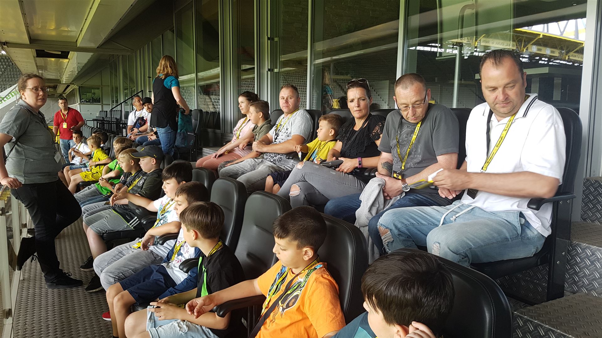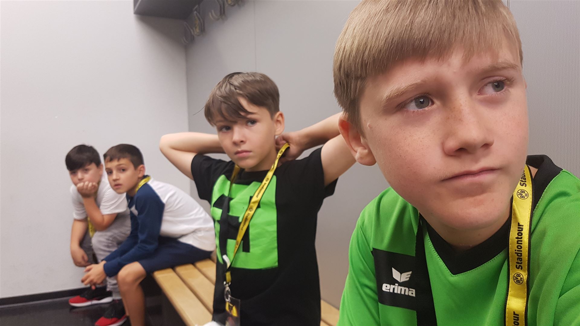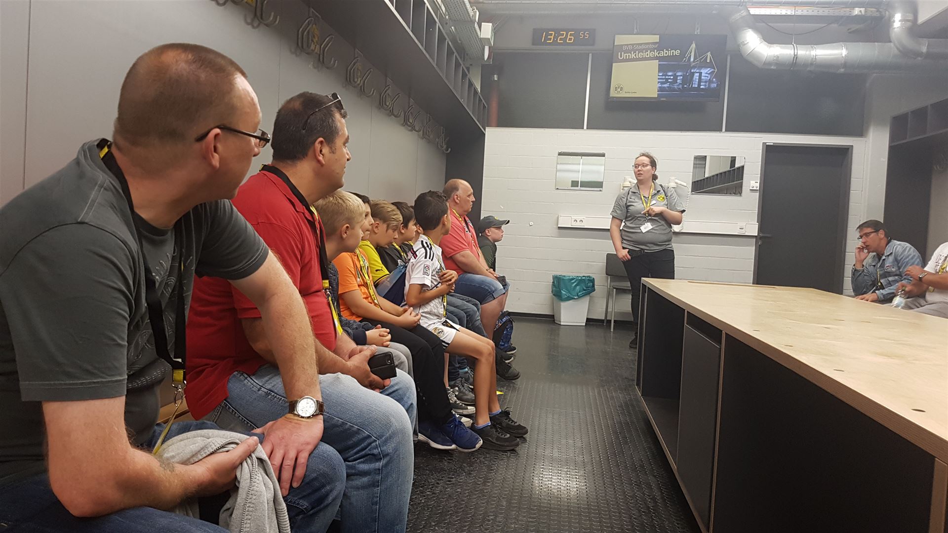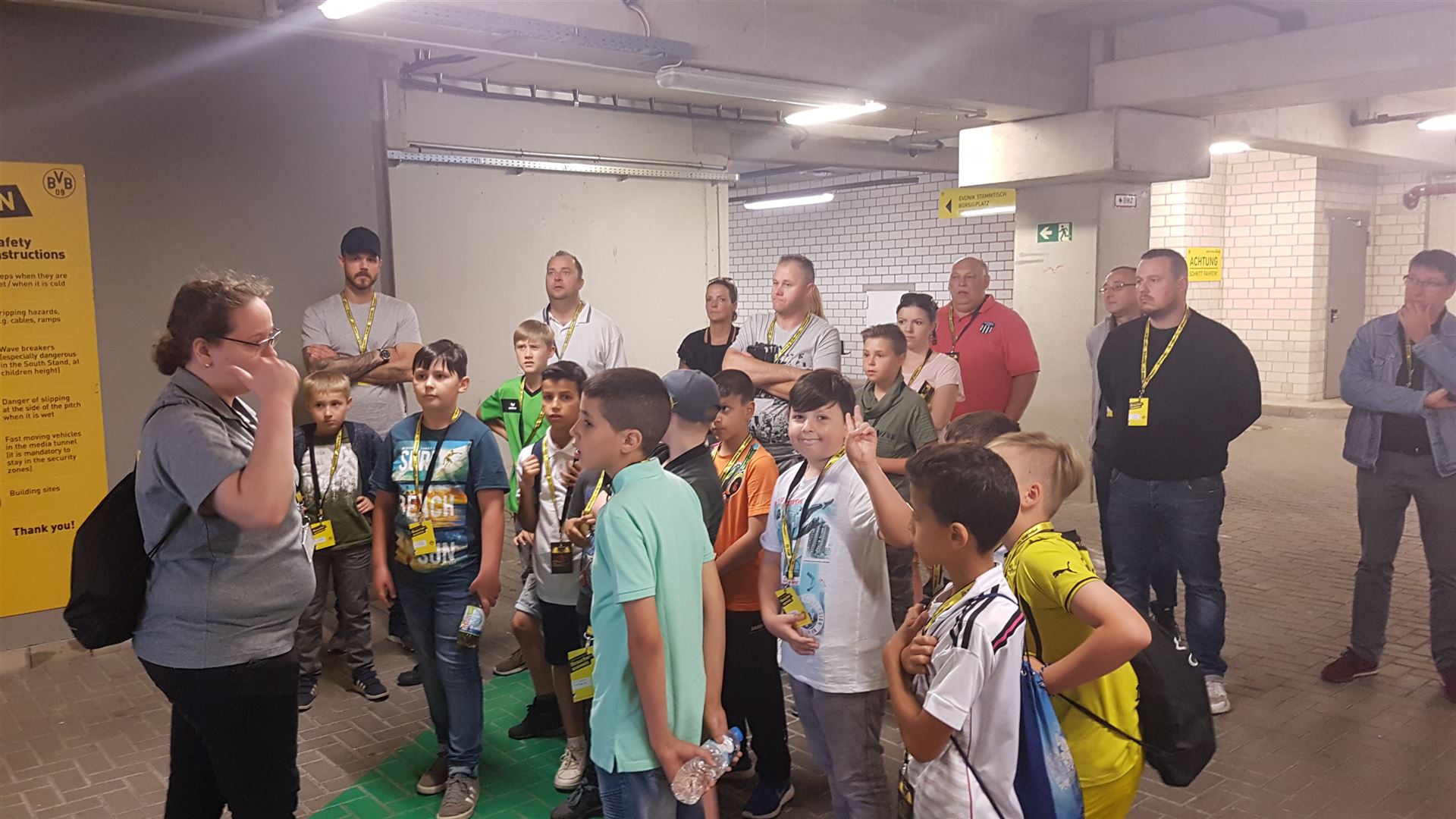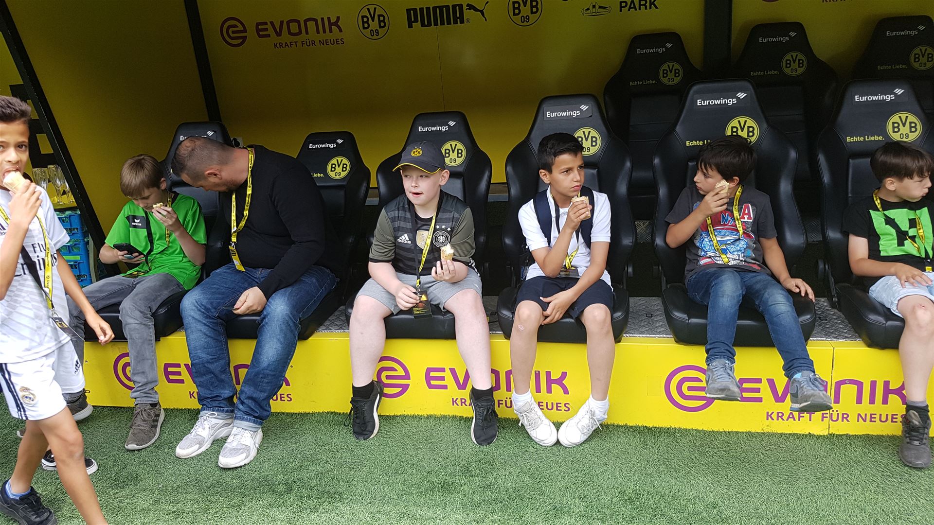 Nach einem harten Jahr, in dem es viele Niederlagen einzustecken gab, hatte sich der Trainer unserer #Teufelskicker aus der E2 eine besondere Aktion für den Saisonabschluss ausgedacht: Am Samstag war es endlich soweit und die Rotter machten sich auf den Weg nach Dortmund zum Signal Iduna Park. Dort führte uns Stadionguide Sarah durch das Stadion, hatte viele spannende und lustige BVB-Anekdoten zu erzählen und zeigte uns den Platz von Gonzalo Castro und Marco Reus in der Umkleidekabine. Auf dem Weg durch den Spielertunnel in Richtung des "heiligen" Rasens konnten unsere Teufelskicker dann mit Musikuntermalung einmal wie die Profis ins Stadion einlaufen und auf der Auswechselbank sitzen. Abgerundet wurde der Ausflug nach einer kurzen Pause im deutschen Fußballmuseum, in dem sich Spieler wie Eltern gut auf die anstehenden WM-Spiele der Deutschen Nationalmannschaft einstimmen konnten. Neben dem WM-Pokal waren auch einige weitere Trophäen wie der Champions League Pokal oder der Europapokal zu sehen und man konnte einiges über die Geschichte des Deutschen Fußballs erfahren. Wusstet ihr zum Beispiel, dass Franz Beckenbauer einen Bambi verliehen bekommen hat? Außerdem konnten die Jungs einmal im DFB-Mannschaftsbus sitzen, wo sonst nur Müller, Boateng und Neuer Platz nehmen dürfen. Insgesamt ein toller Tag für unsere Teufelskicker und deren Familien.