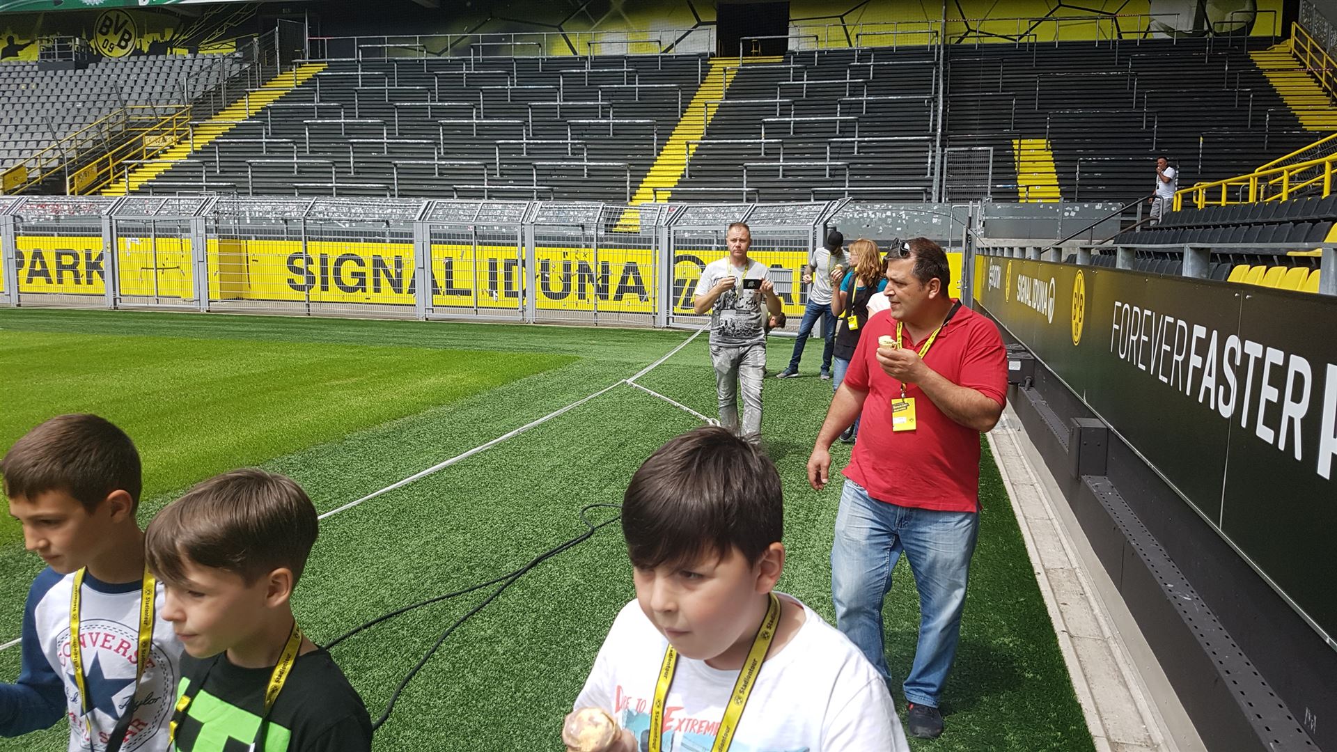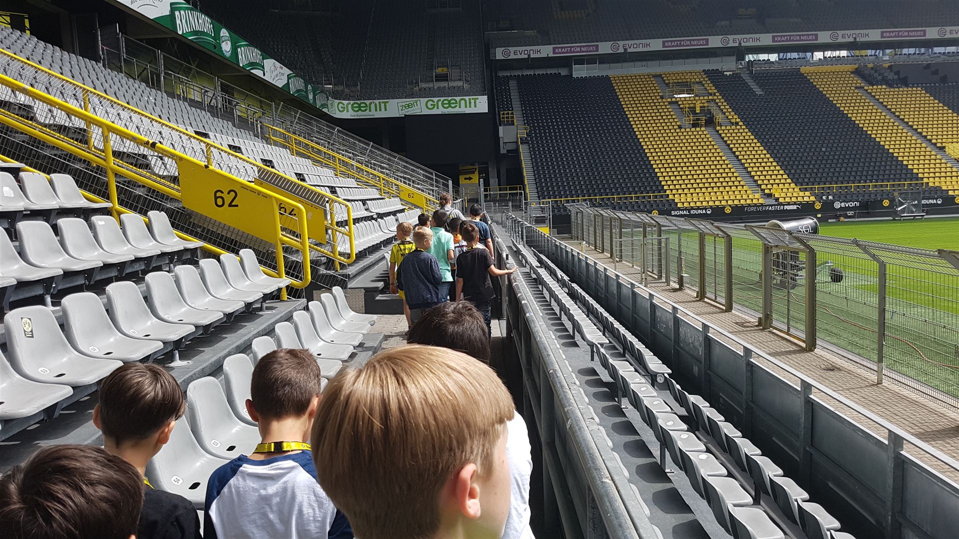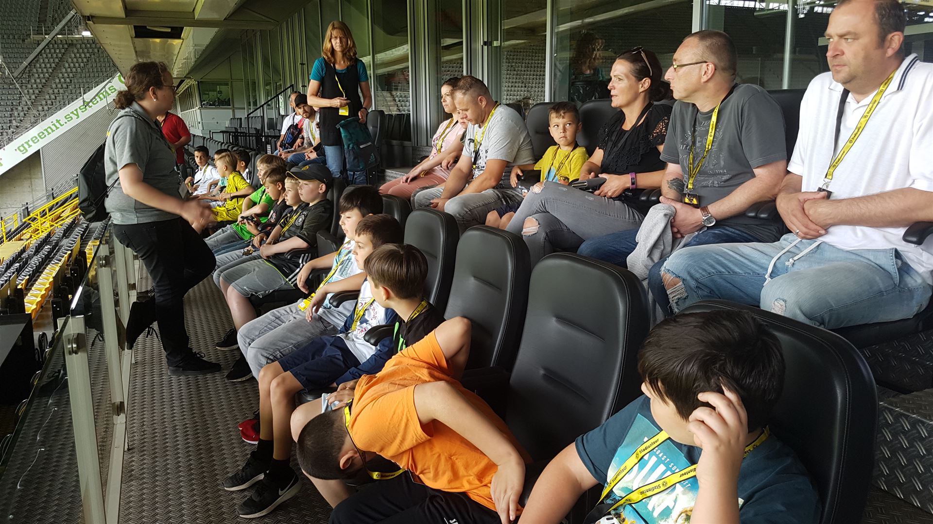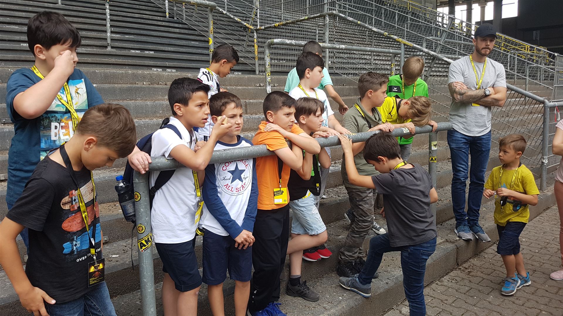 Nach einem harten Jahr, in dem es viele Niederlagen einzustecken gab, hatte sich der Trainer unserer #Teufelskicker aus der E2 eine besondere Aktion für den Saisonabschluss ausgedacht: Am Samstag war es endlich soweit und die Rotter machten sich auf den Weg nach Dortmund zum Signal Iduna Park. Dort führte uns Stadionguide Sarah durch das Stadion, hatte viele spannende und lustige BVB-Anekdoten zu erzählen und zeigte uns den Platz von Gonzalo Castro und Marco Reus in der Umkleidekabine. Auf dem Weg durch den Spielertunnel in Richtung des "heiligen" Rasens konnten unsere Teufelskicker dann mit Musikuntermalung einmal wie die Profis ins Stadion einlaufen und auf der Auswechselbank sitzen. Abgerundet wurde der Ausflug nach einer kurzen Pause im deutschen Fußballmuseum, in dem sich Spieler wie Eltern gut auf die anstehenden WM-Spiele der Deutschen Nationalmannschaft einstimmen konnten. Neben dem WM-Pokal waren auch einige weitere Trophäen wie der Champions League Pokal oder der Europapokal zu sehen und man konnte einiges über die Geschichte des Deutschen Fußballs erfahren. Wusstet ihr zum Beispiel, dass Franz Beckenbauer einen Bambi verliehen bekommen hat? Außerdem konnten die Jungs einmal im DFB-Mannschaftsbus sitzen, wo sonst nur Müller, Boateng und Neuer Platz nehmen dürfen. Insgesamt ein toller Tag für unsere Teufelskicker und deren Familien.